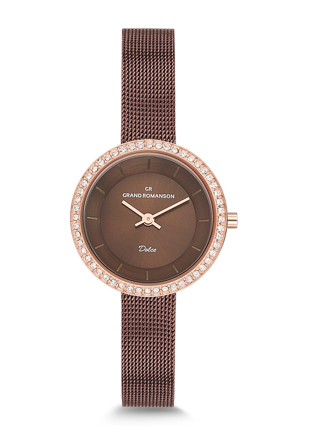 Kadın - Taşli - Rose - Kahverengi̇ - Çeli̇k Örme Kordon - 3 Atm - Sertleşti̇ri̇lmi̇ş Mi̇neral Cam - Grand Romanson