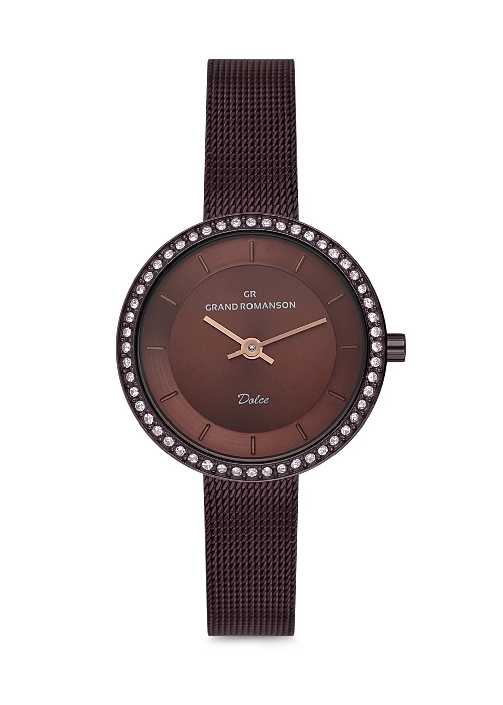Kadın - Taşli - Rose Kahverengi̇ - Kahverengi̇ - Çeli̇k Örme Kordon - 3 Atm - Sertleşti̇ri̇lmi̇ş Mi̇neral Cam - Grand Romanson