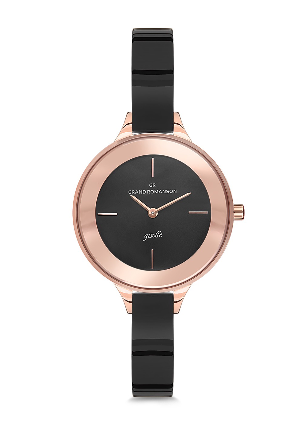Kadın - Düz - Rose - Si̇yah - Paslanmaz Masi̇f Çeli̇k - 3 Atm - Sertleşti̇ri̇lmi̇ş Mi̇neral Cam - Grand Romanson