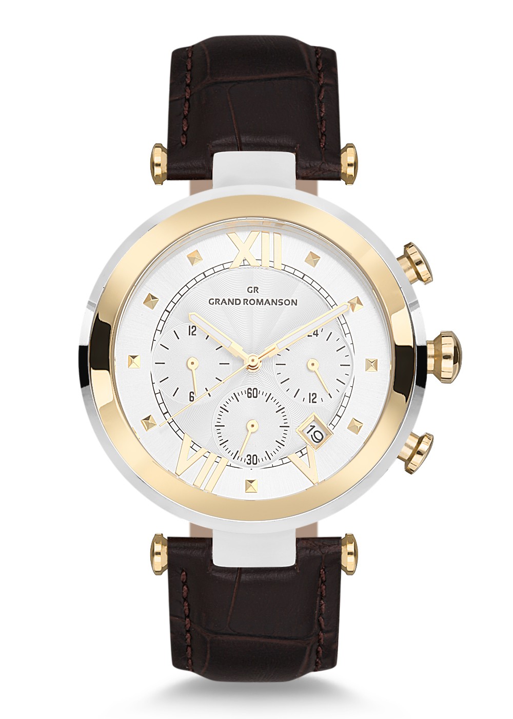 Erkek - Multi̇ Fonksi̇yon - Sari Beyaz - Gümüş - Doğal Deri̇ Kordon - Kahverengi̇ - 3 Atm - Grand Romanson