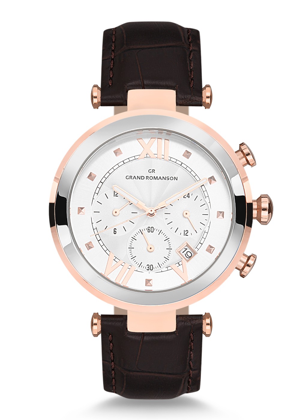 Erkek - Multi̇ Fonksi̇yon - Rose Beyaz - Gümüş - Doğal Deri̇ Kordon - Kahverengi̇ - 3 Atm - Grand Romanson