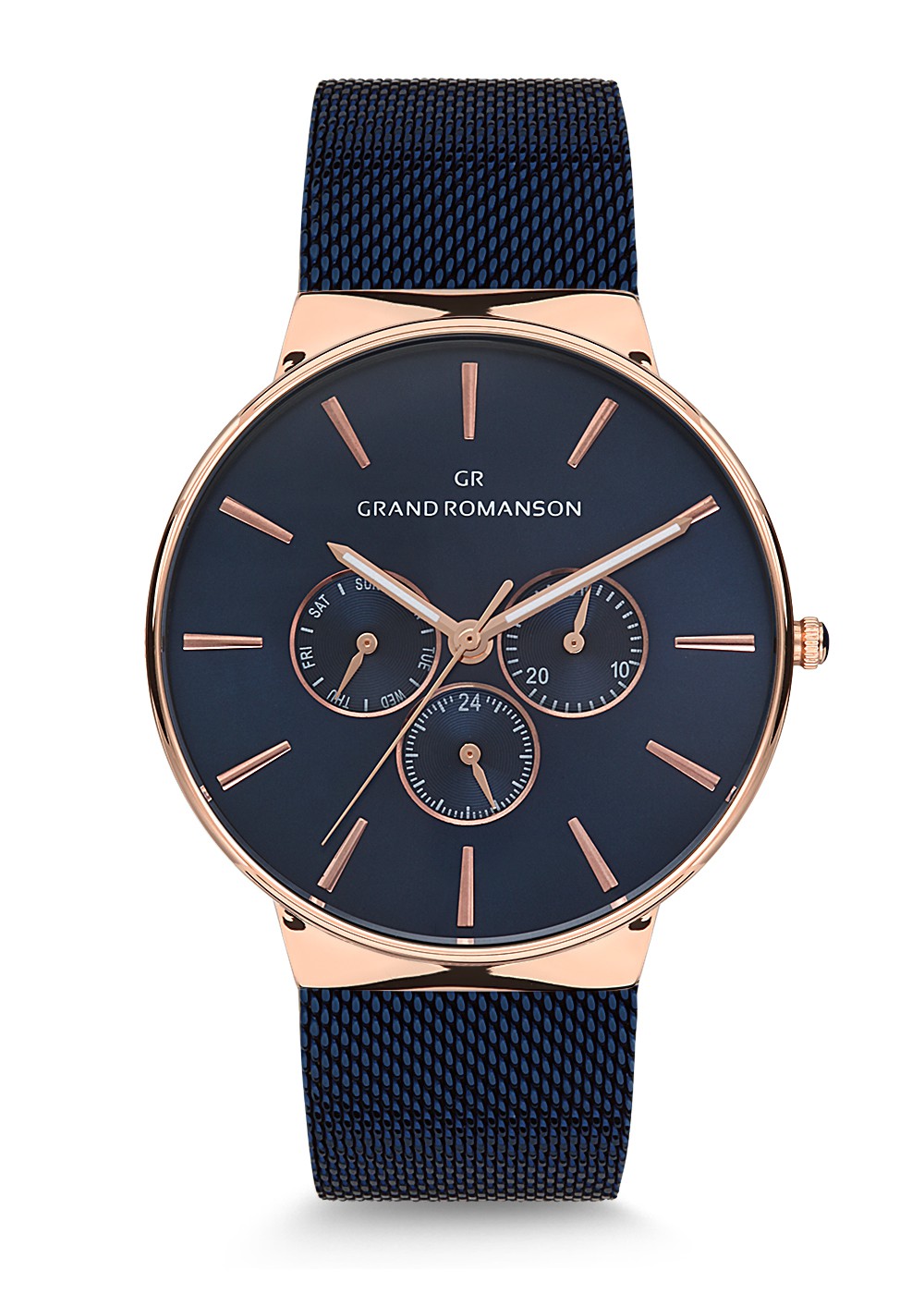 Erkek - Multi̇ Fonksi̇yon - Rose - Mavi̇ - Çeli̇k Örme Kordon - 3 Atm - Grand Romanson - 42