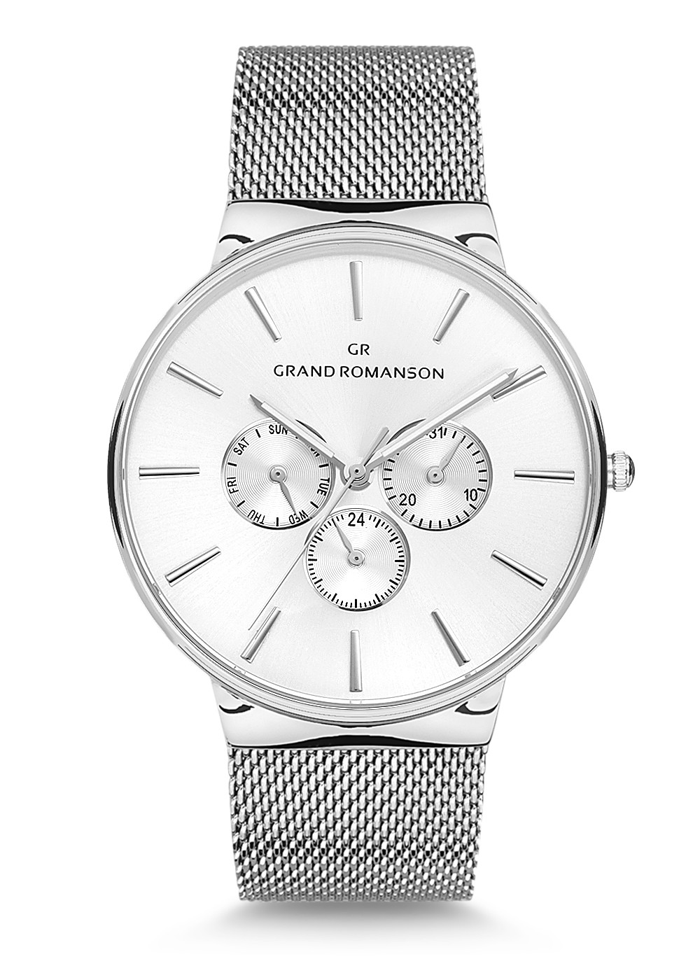 Erkek - Multi̇ Fonksi̇yon - Gümüş - Gümüş - Çeli̇k Örme Kordon - 3 Atm - Sertleşti̇ri̇lmi̇ş Mi̇neral Cam - Grand Romanson - 42