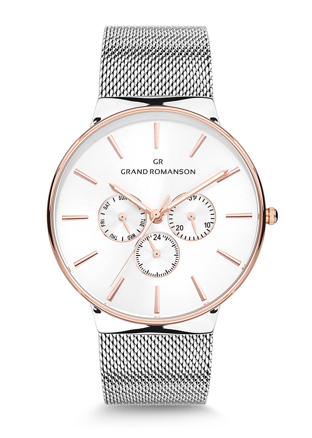 Erkek - Multi̇ Fonksi̇yon - Rose Beyaz - Gümüş - Çeli̇k Örme Kordon - 3 Atm - Grand Romanson - 42