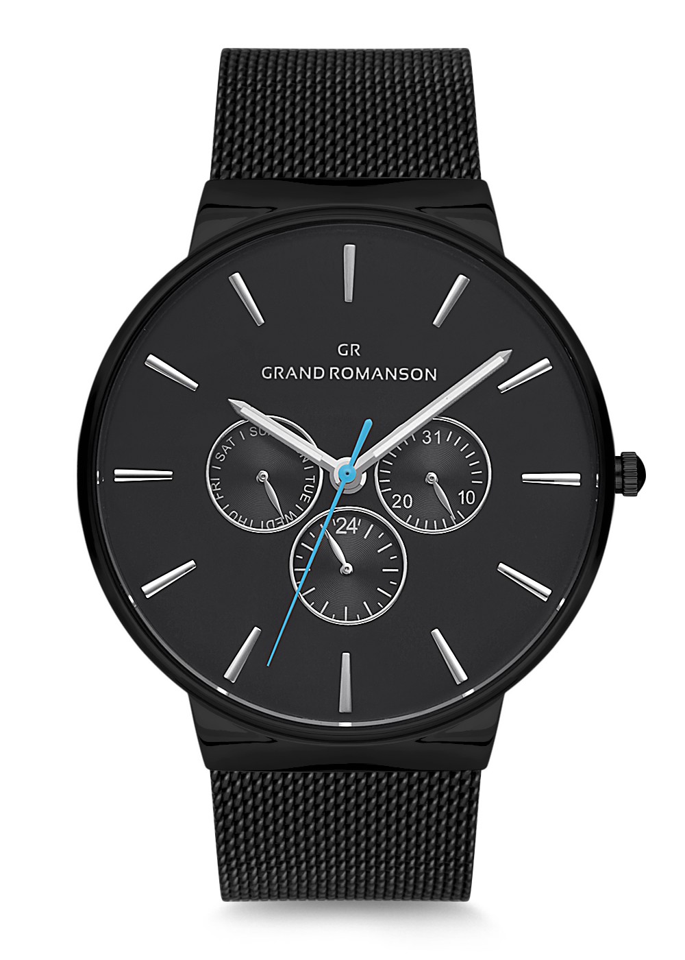Erkek - Multi̇ Fonksi̇yon - Si̇yah - Gri̇ - Çeli̇k Örme Kordon - 3 Atm - Sertleşti̇ri̇lmi̇ş Mi̇neral Cam - Grand Romanson - 42