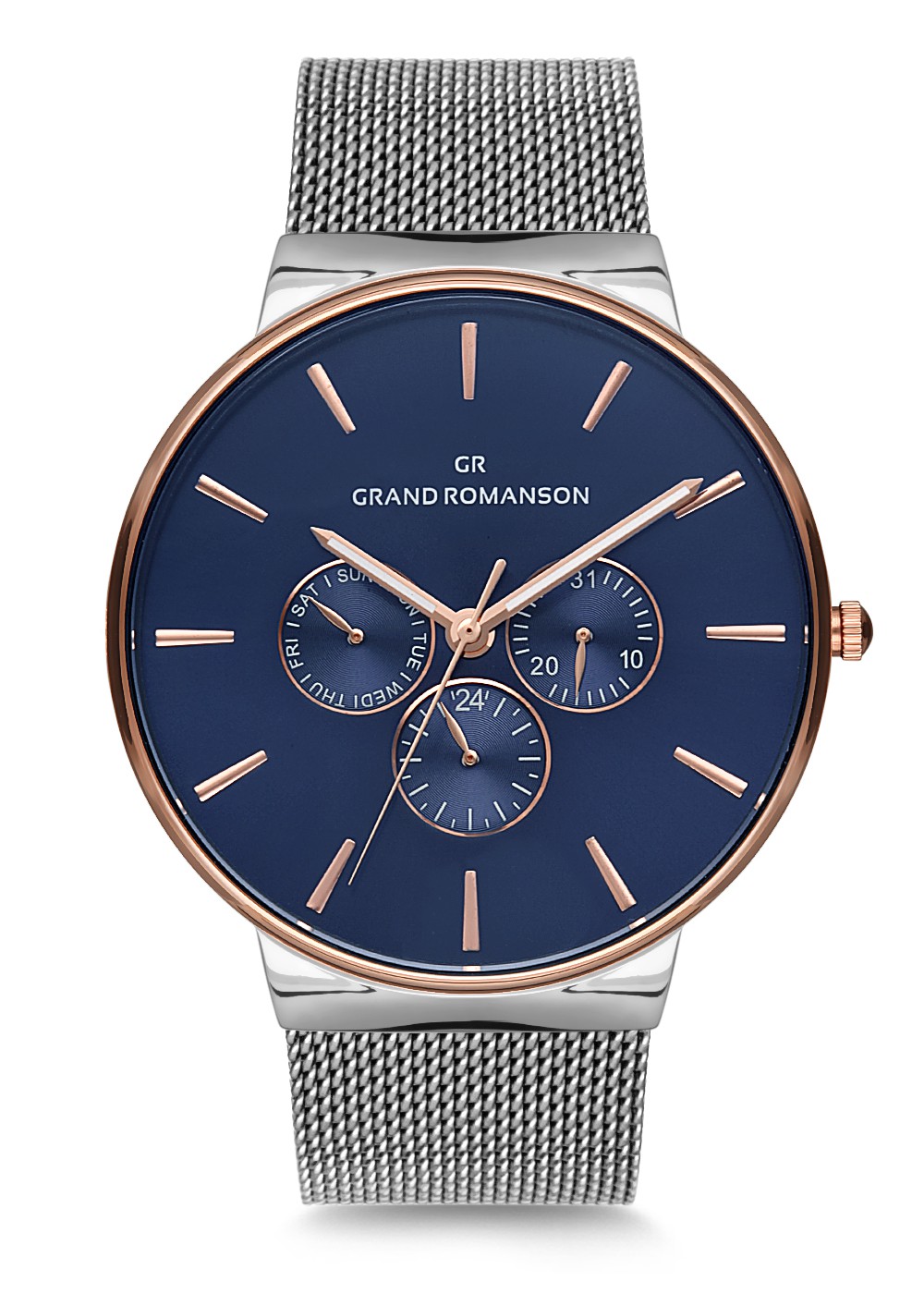 Erkek - Multi̇ Fonksi̇yon - Rose Beyaz - Mavi̇ - Çeli̇k Örme Kordon - 3 Atm - Sertleşti̇ri̇lmi̇ş Mi̇neral Cam - Grand Romanson - 42