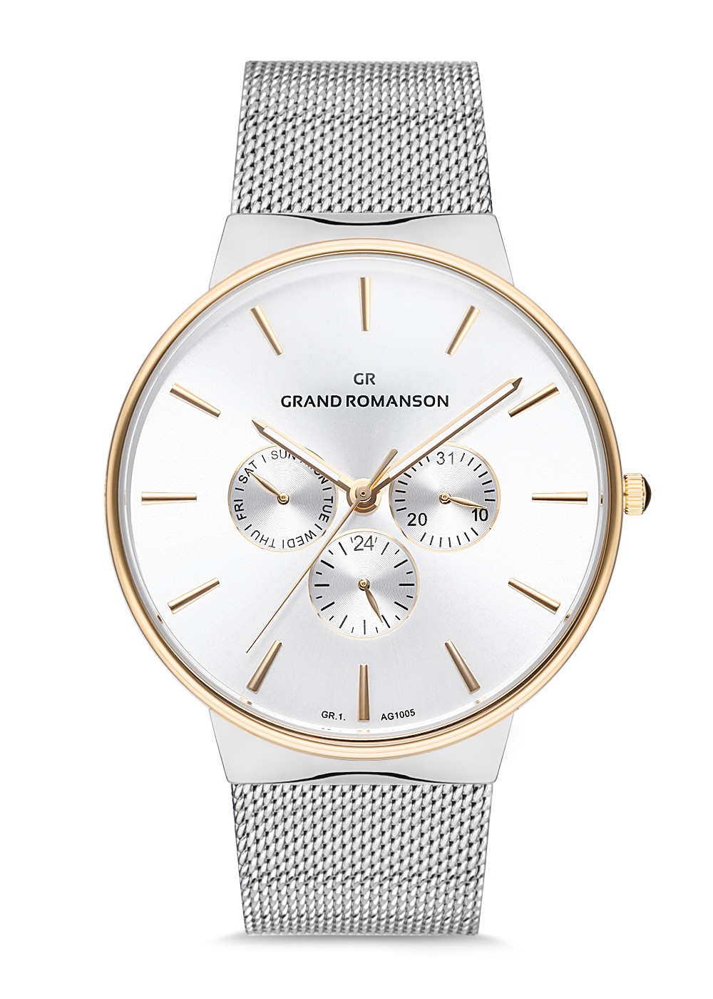 Erkek - Multi̇ Fonksi̇yon - Sari Beyaz - Gümüş - Çeli̇k Örme Kordon - 3 Atm - Sertleşti̇ri̇lmi̇ş Mi̇neral Cam - Grand Romanson - 42