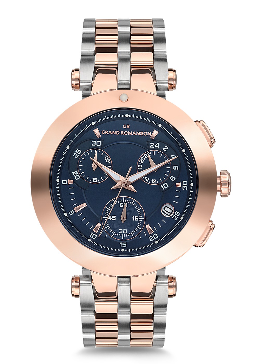 Erkek - Kronometre - Rose Beyaz - Mavi̇ - Paslanmaz Masi̇f Çeli̇k - 3 Atm - Grand Romanson
