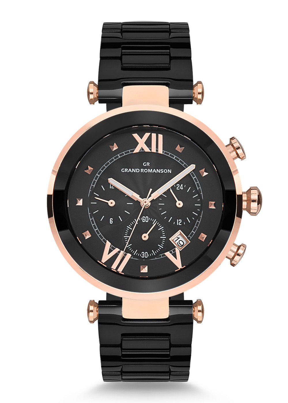 Erkek - Multi̇ Fonksi̇yon - Rose Si̇yah - Si̇yah - Paslanmaz Masi̇f Çeli̇k - 3 Atm - Sertleşti̇ri̇lmi̇ş Mi̇neral Cam - Grand Romanson
