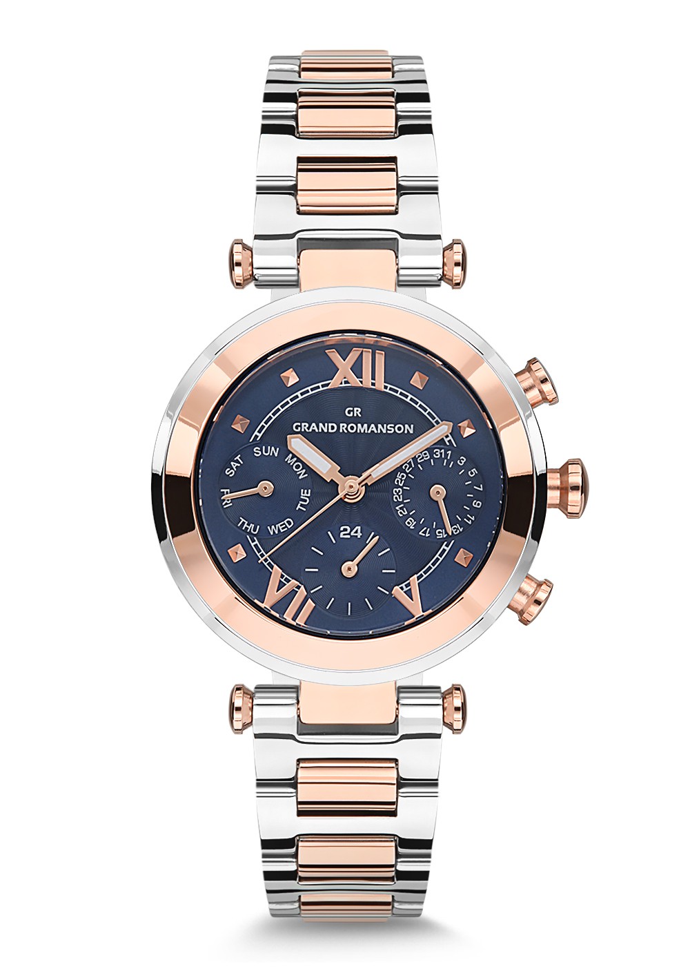 Kadın - Multi̇ Fonksi̇yon - Rose Beyaz - Mavi̇ - Paslanmaz Masi̇f Çeli̇k - 3 Atm - Grand Romanson
