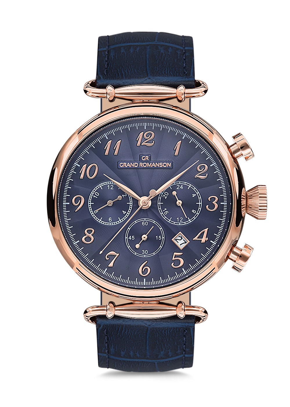 Erkek - Kronometre - Rose - Mavi̇ - Doğal Deri̇ Kordon - Mavi̇ - 3 Atm - Grand Romanson
