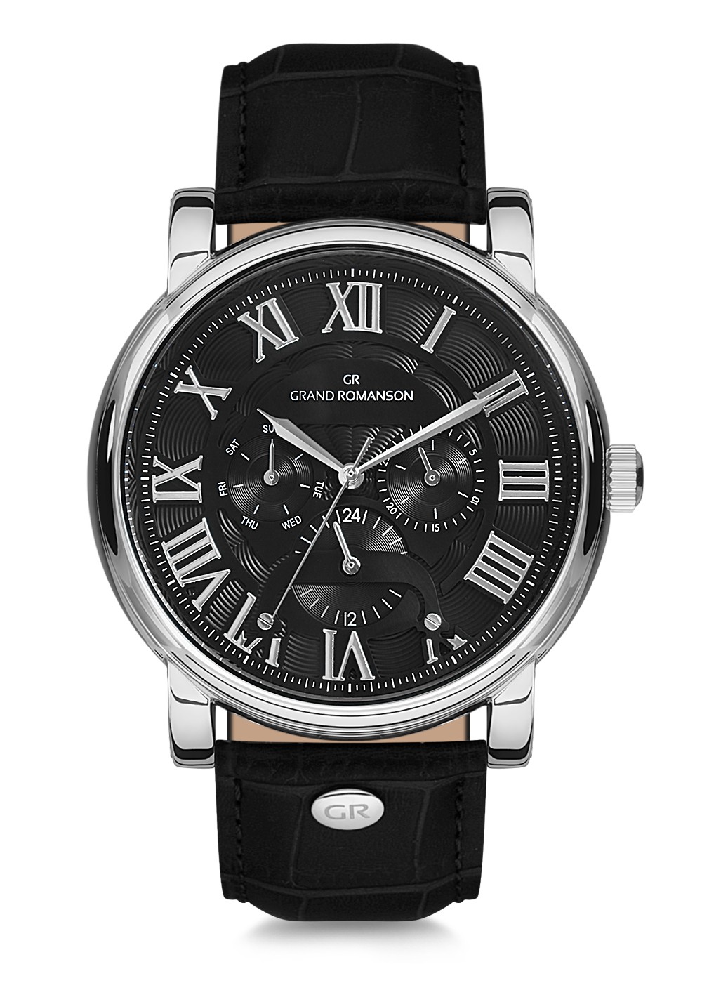 Erkek - Kronometre - Gümüş - Si̇yah - Doğal Deri̇ Kordon - 3 Atm - Grand Romanson