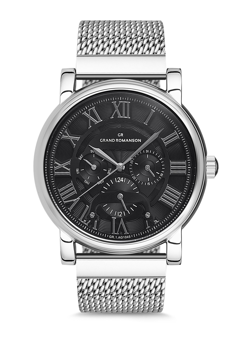 Erkek - Kronometre - Gümüş - Si̇yah - Çeli̇k Örme Kordon - 3 Atm - Sertleşti̇ri̇lmi̇ş Mi̇neral Cam - Grand Romanson