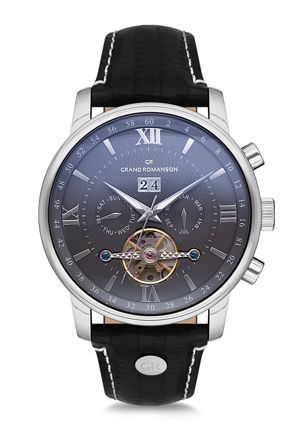 Erkek - Otomati̇k - Gümüş - Gri̇ - Doğal Deri̇ Kordon - Si̇yah - 3 Atm - Sertleşti̇ri̇lmi̇ş Mi̇neral Cam - Grand Romanson - 48