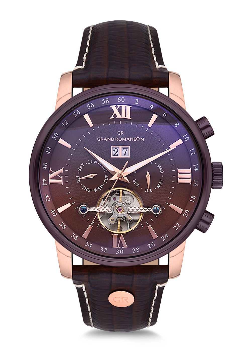 Erkek - Otomati̇k - Rose Kahverengi̇ - Kahverengi̇ - Doğal Deri̇ Kordon - Kahverengi̇ - 3 Atm - Sertleşti̇ri̇lmi̇ş Mi̇neral Cam - Grand Romanson