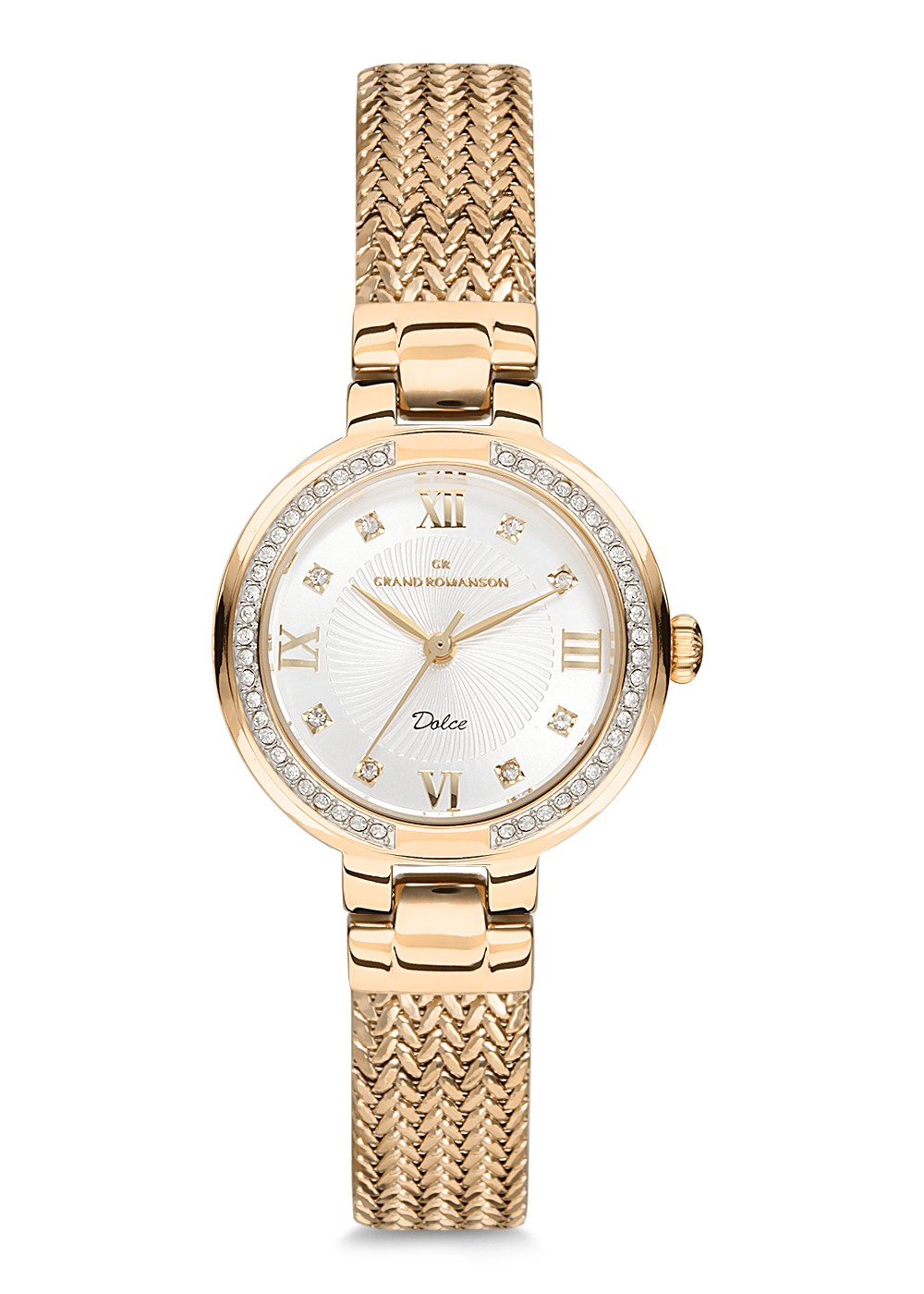 Kadın - Taşli - Sari - Gümüş - Çeli̇k Örme Kordon - 3 Atm - Sertleşti̇ri̇lmi̇ş Mi̇neral Cam - Grand Romanson - 28