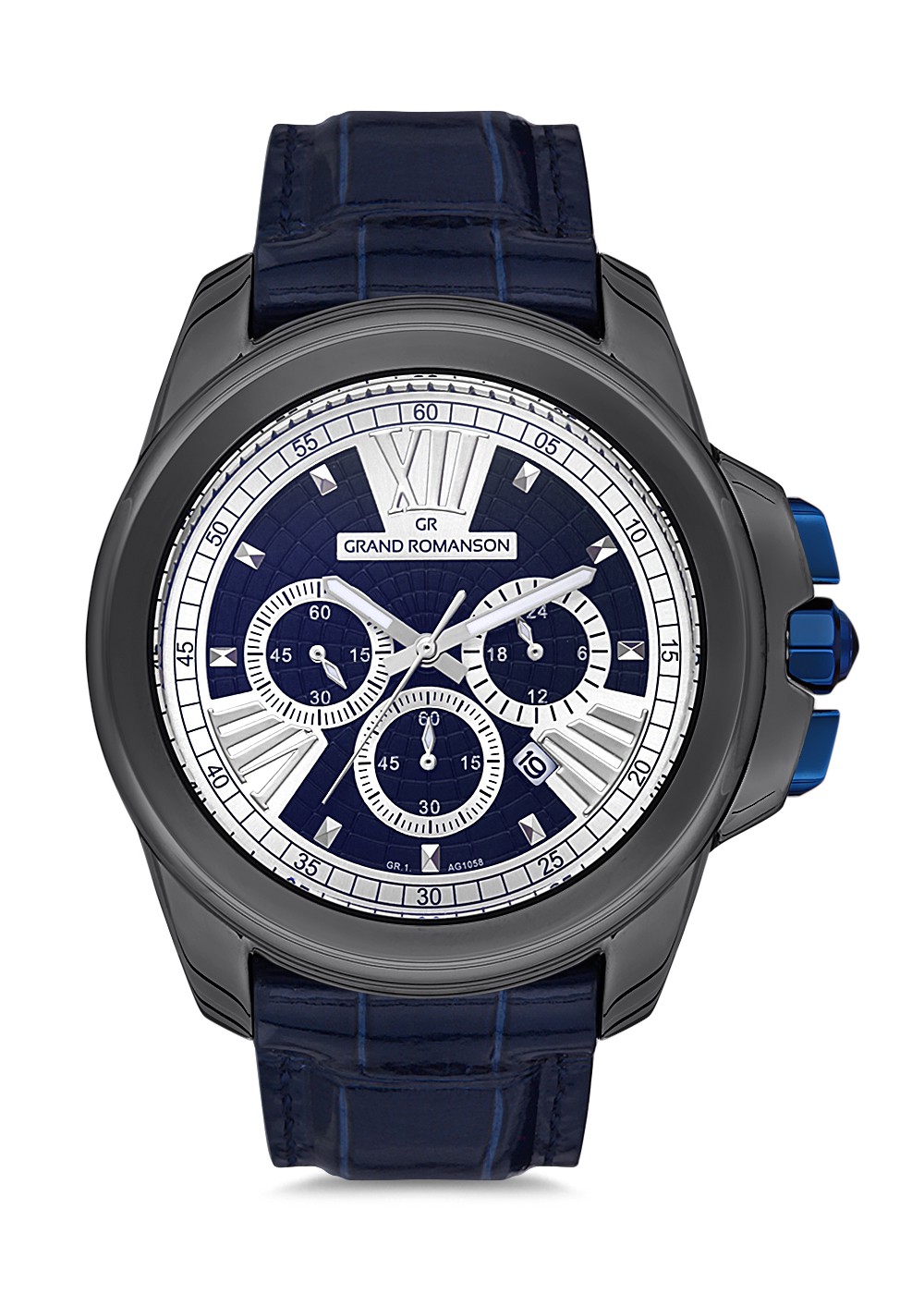 Erkek - Kronometre - Gun - Mavi̇ - Doğal Deri̇ Kordon - Mavi̇ - 3 Atm - Grand Romanson - 50