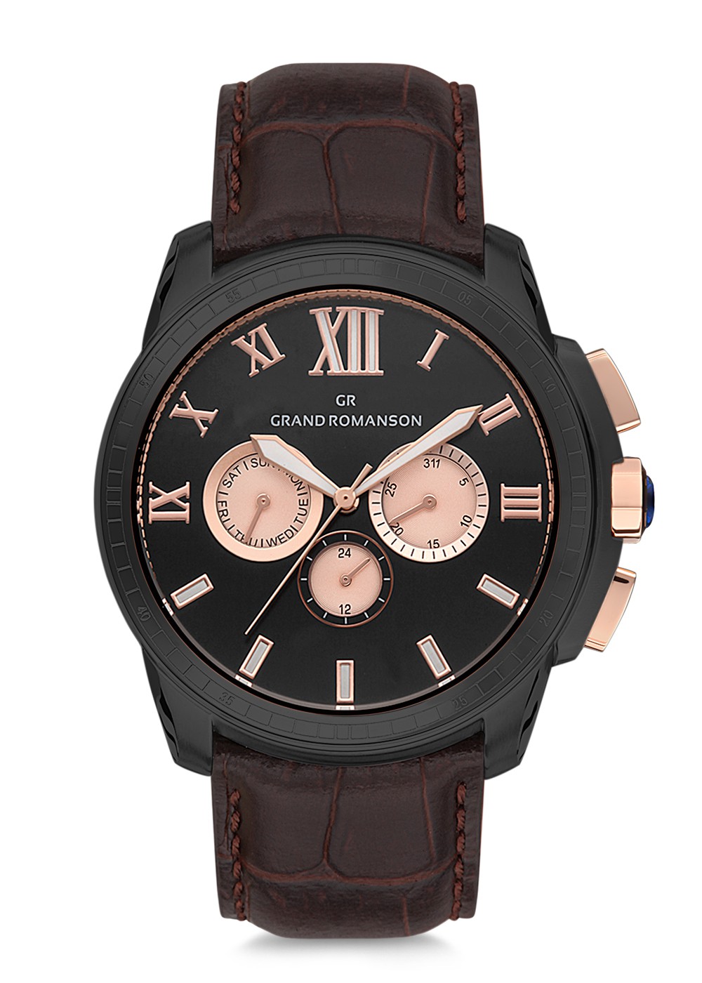 Erkek - Multi̇ Fonksi̇yon - Rose Beyaz - Gümüş - Doğal Deri̇ Kordon - Kahverengi̇ - 3 Atm - Grand Romanson