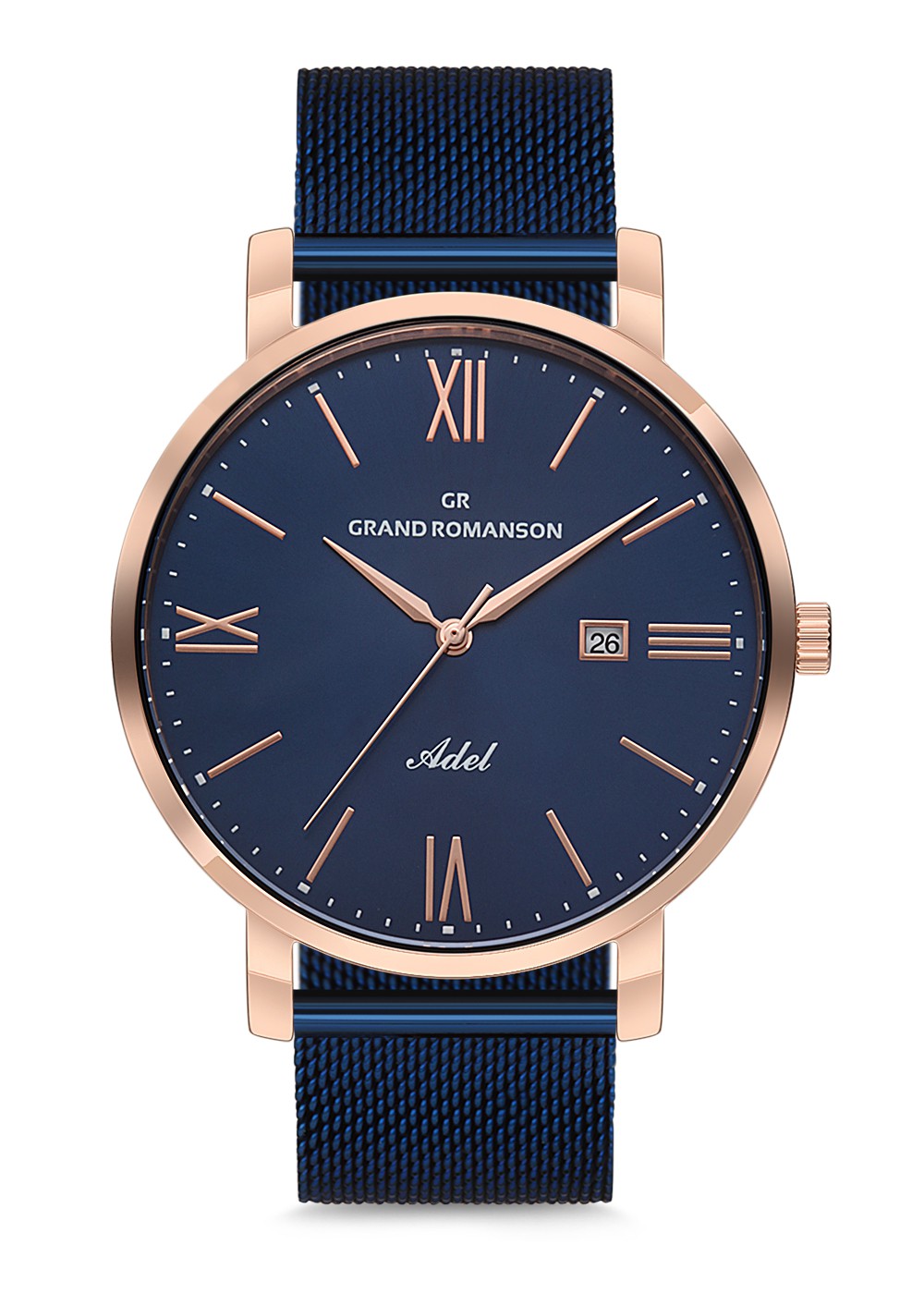 Erkek - Takvi̇mli̇ - Rose - Mavi̇ - Paslanmaz Masi̇f Çeli̇k - 3 Atm - Grand Romanson