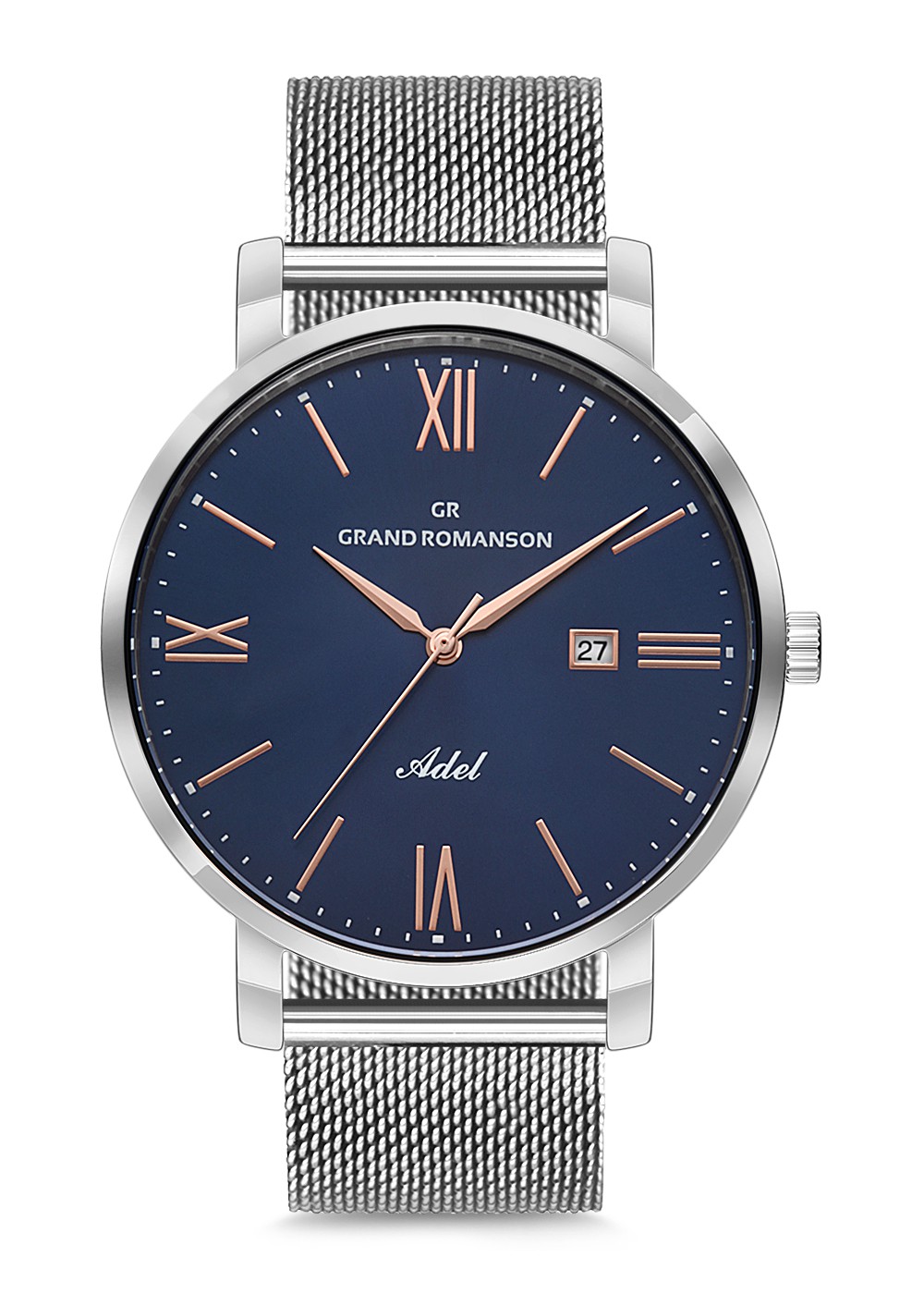 Erkek - Takvi̇mli̇ - Gümüş - Mavi̇ - Paslanmaz Masi̇f Çeli̇k - 3 Atm - Grand Romanson