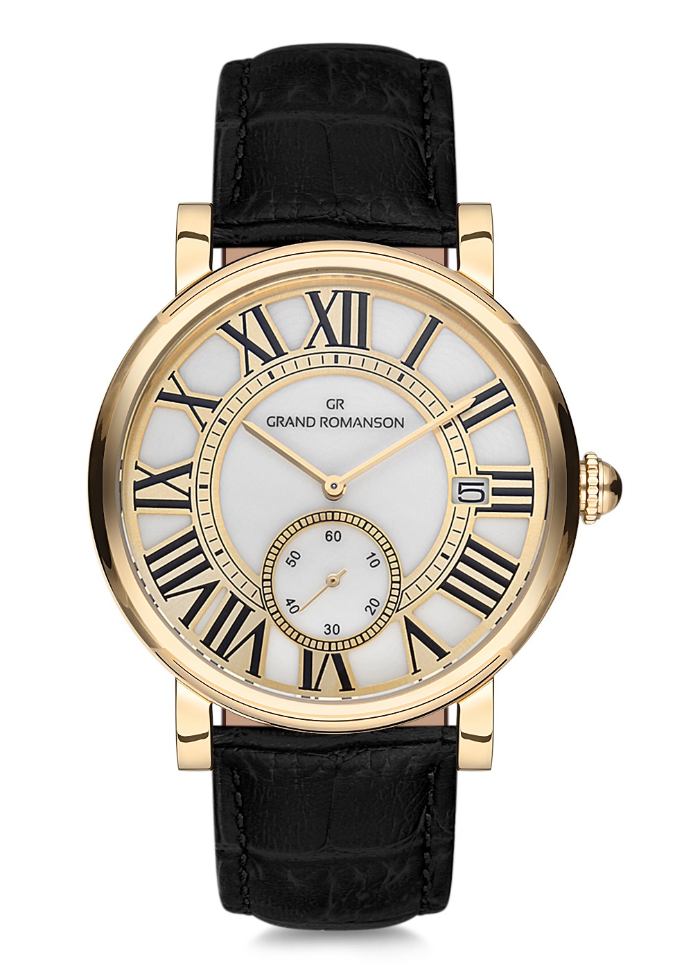 Erkek - Alttan Sani̇ye - Sari - Beyaz - Doğal Deri̇ Kordon - Si̇yah - 3 Atm - Grand Romanson