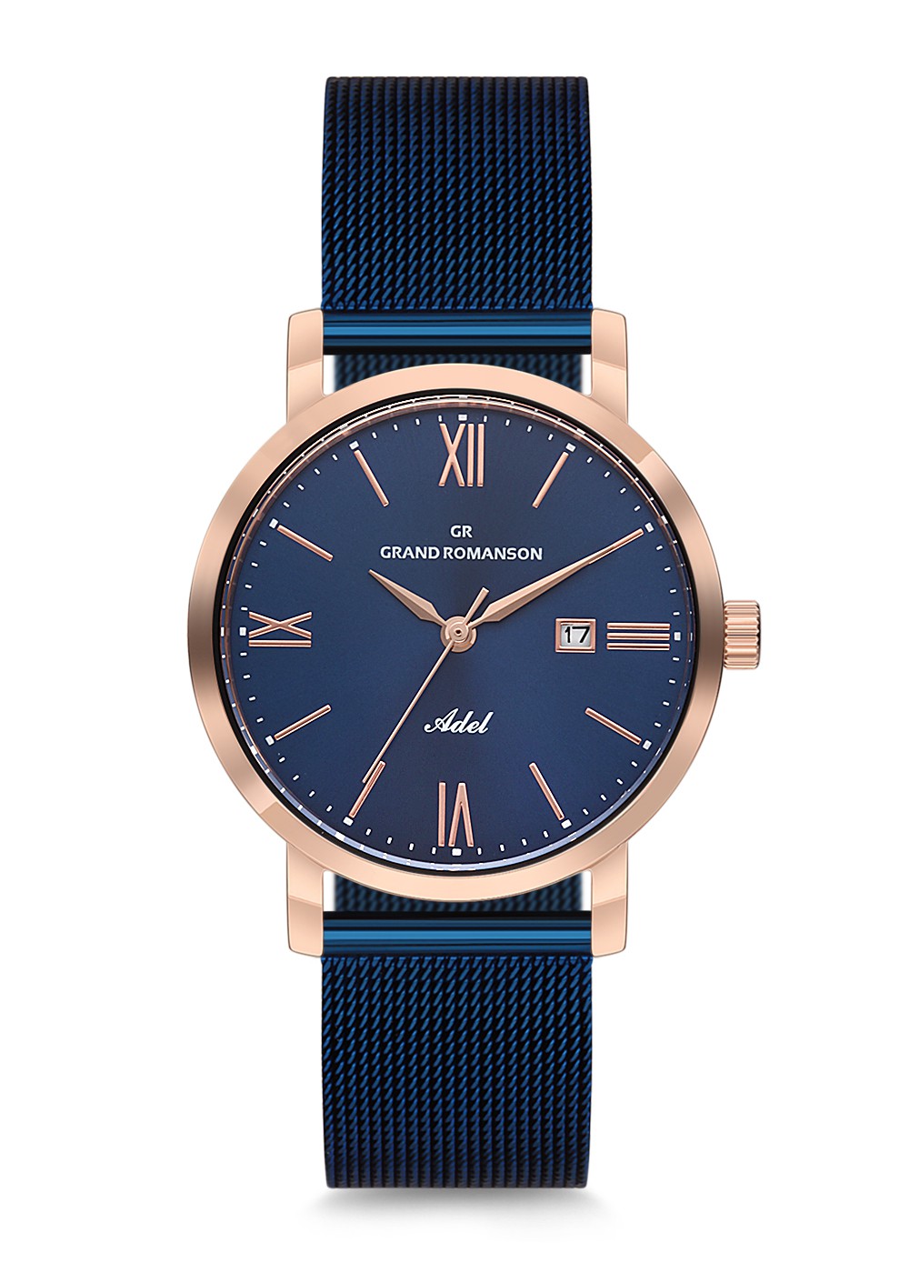 Kadın - Takvi̇mli̇ - Rose Mavi̇ - Mavi̇ - Çeli̇k Örme Kordon - 3 Atm - Sertleşti̇ri̇lmi̇ş Mi̇neral Cam - Grand Romanson