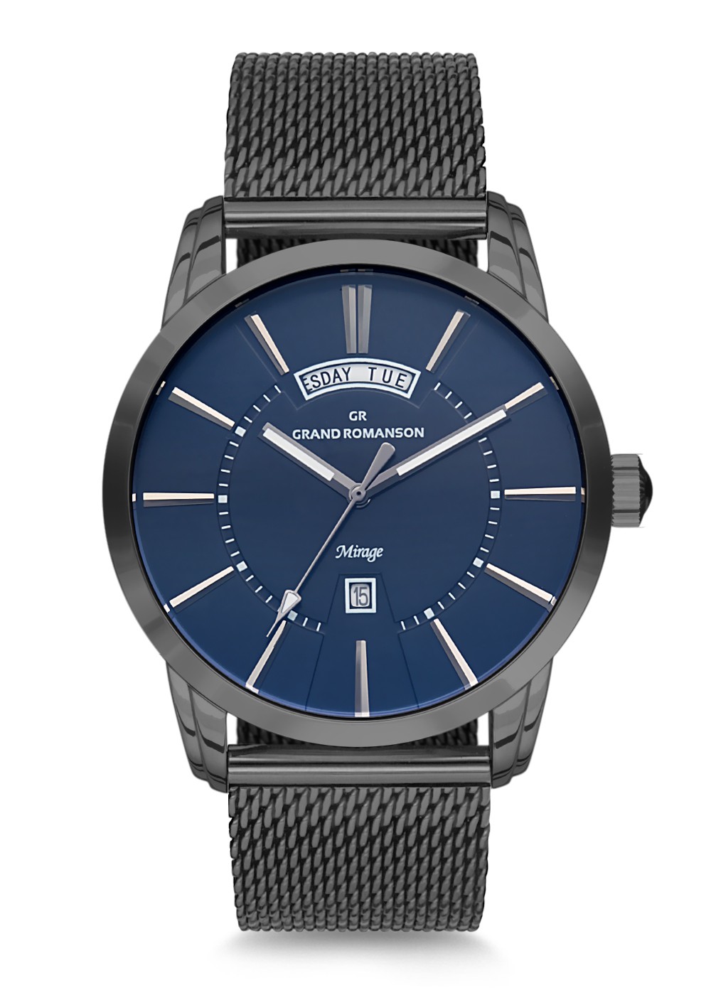 Erkek - Takvi̇mli̇ - Gümüş - Mavi̇ - Paslanmaz Masi̇f Çeli̇k - 3 Atm - Grand Romanson