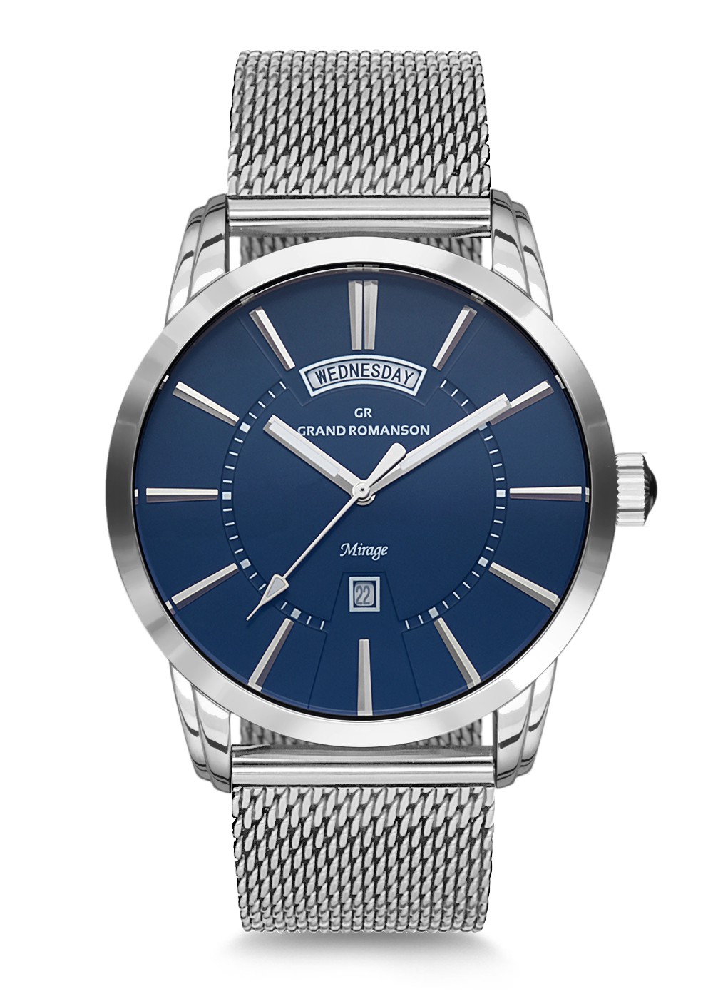 Erkek - Takvi̇mli̇ - Gümüş - Mavi̇ - Paslanmaz Masi̇f Çeli̇k - 3 Atm - Grand Romanson