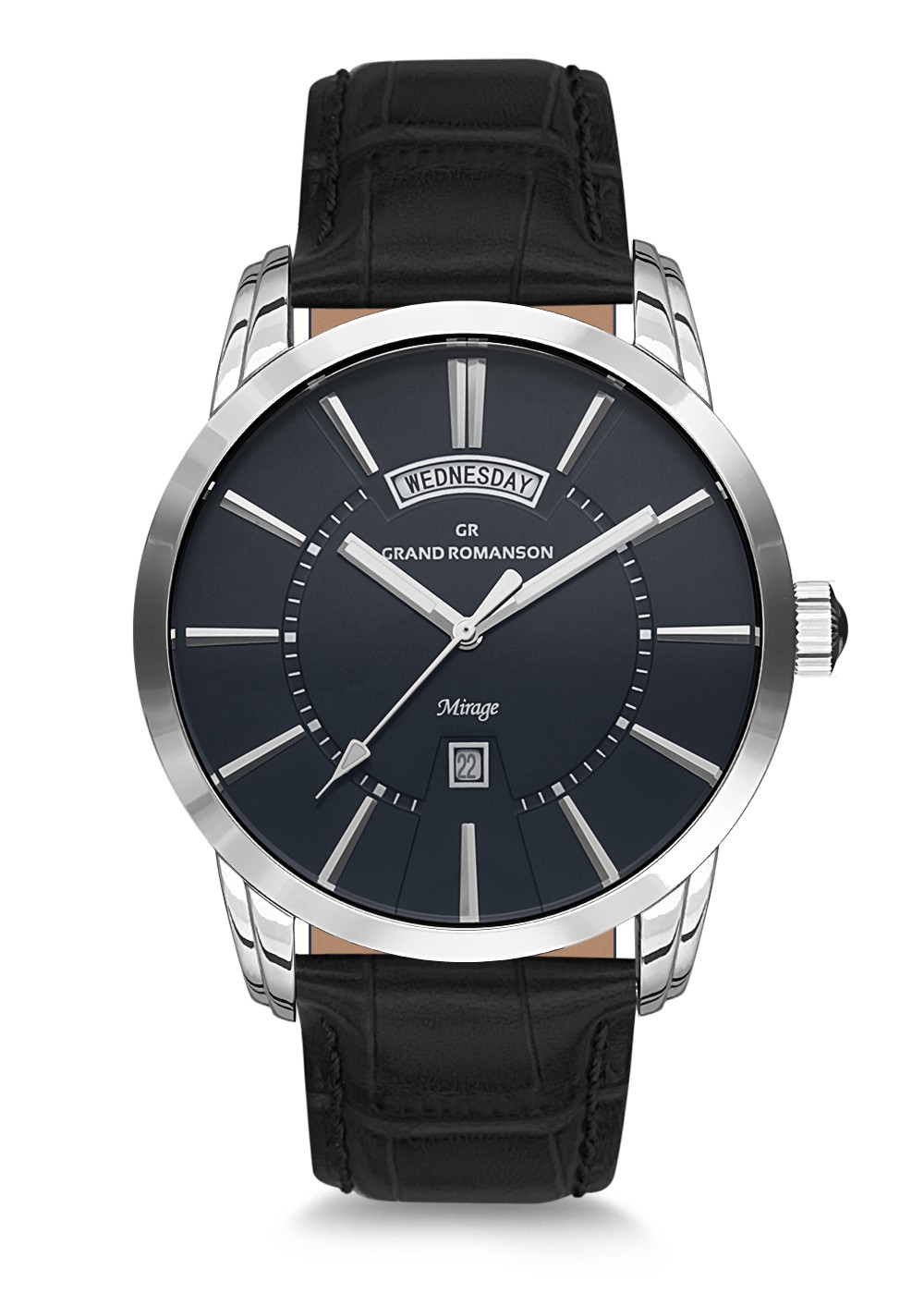 Erkek - Takvi̇mli̇ - Gümüş - Si̇yah - Doğal Deri̇ Kordon - Si̇yah - 3 Atm - Grand Romanson
