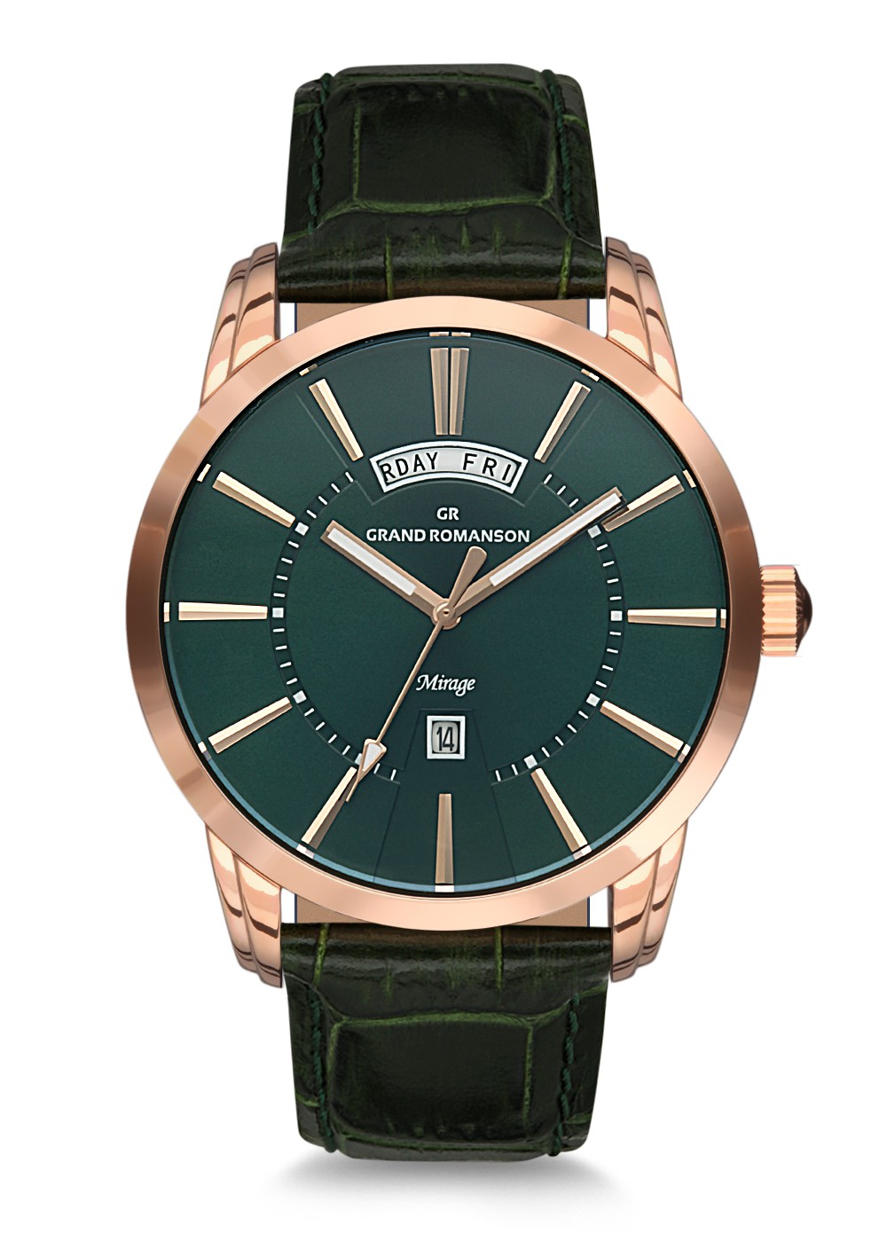 Erkek - Takvi̇mli̇ - Rose - Yeşi̇l - Doğal Deri̇ Kordon - Yeşi̇l - 3 Atm - Grand Romanson