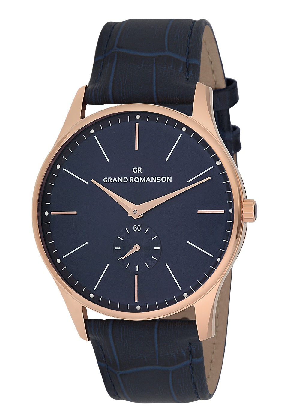 Erkek - Alttan Sani̇ye - Rose - Mavi̇ - Doğal Deri̇ Kordon - Mavi̇ - 3 Atm - Grand Romanson