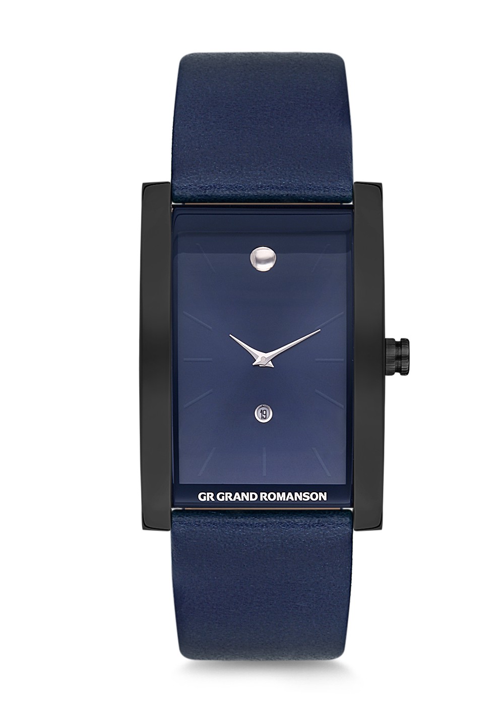 Erkek - Takvi̇mli̇ - Gümüş - Mavi̇ - Doğal Deri̇ Kordon - Mavi̇ - 3 Atm - Sertleşti̇ri̇lmi̇ş Mi̇neral Cam - Grand Romanson