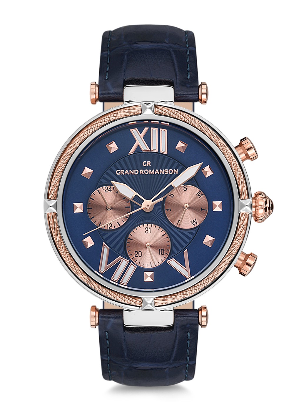 Erkek - Multi̇ Fonksi̇yon - Rose Beyaz - Mavi̇ - Doğal Deri̇ Kordon - Mavi̇ - 3 Atm - Grand Romanson