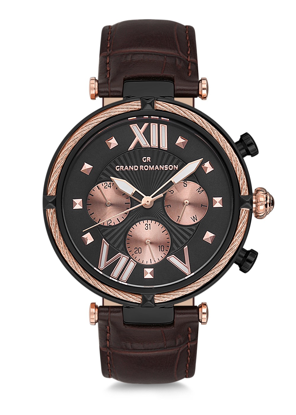 Erkek - Multi̇ Fonksi̇yon - Rose Si̇yah - Si̇yah - Doğal Deri̇ Kordon - Kahverengi̇ - 3 Atm - Grand Romanson