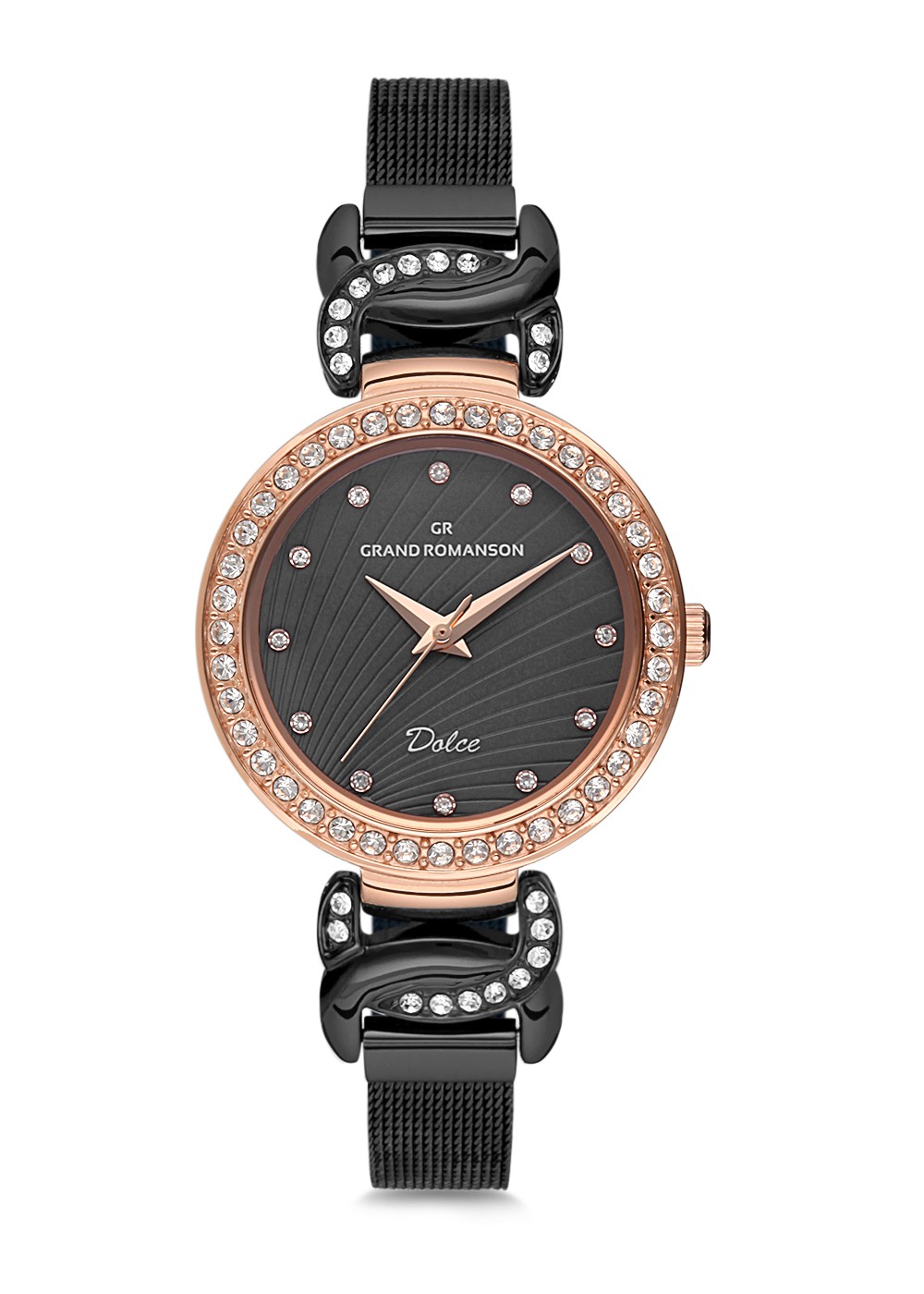 Kadın - Taşli - Rose - Si̇yah - Çeli̇k Örme Kordon - 3 Atm - Sertleşti̇ri̇lmi̇ş Mi̇neral Cam - Grand Romanson - 30
