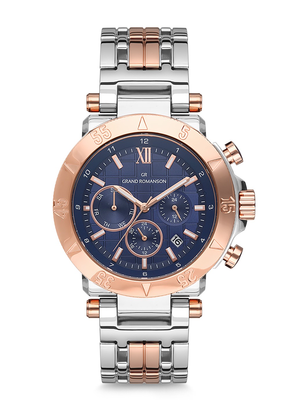Erkek - Kronometre - Rose Beyaz - Mavi̇ - Paslanmaz Masi̇f Çeli̇k - 3 Atm - Grand Romanson