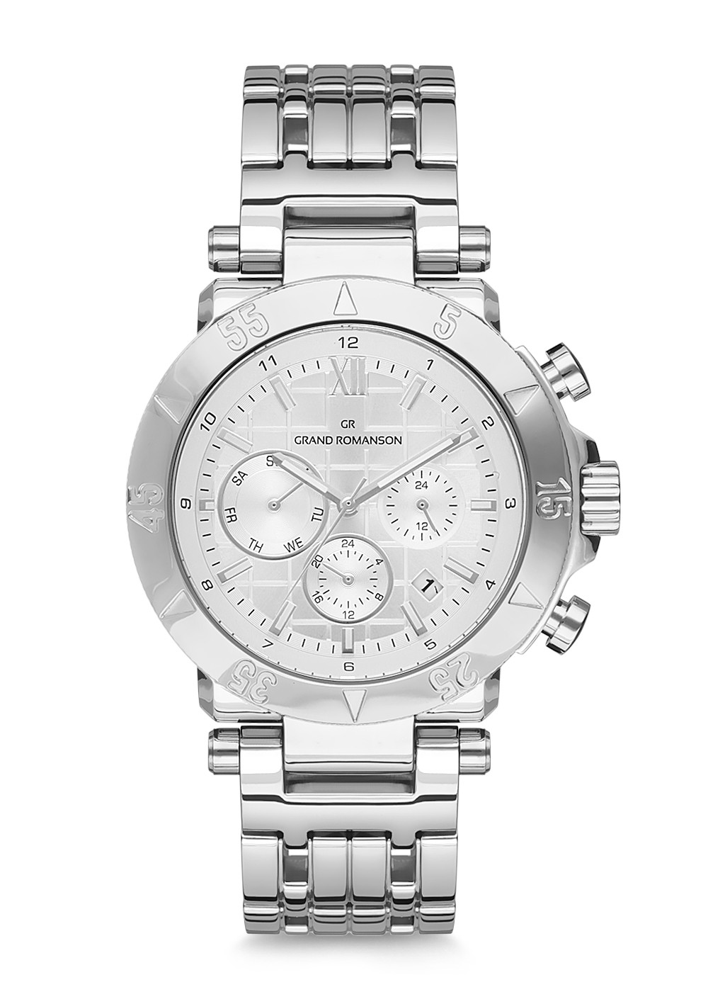 Erkek - Kronometre - Gümüş - Gümüş - Paslanmaz Masi̇f Çeli̇k - 3 Atm - Grand Romanson