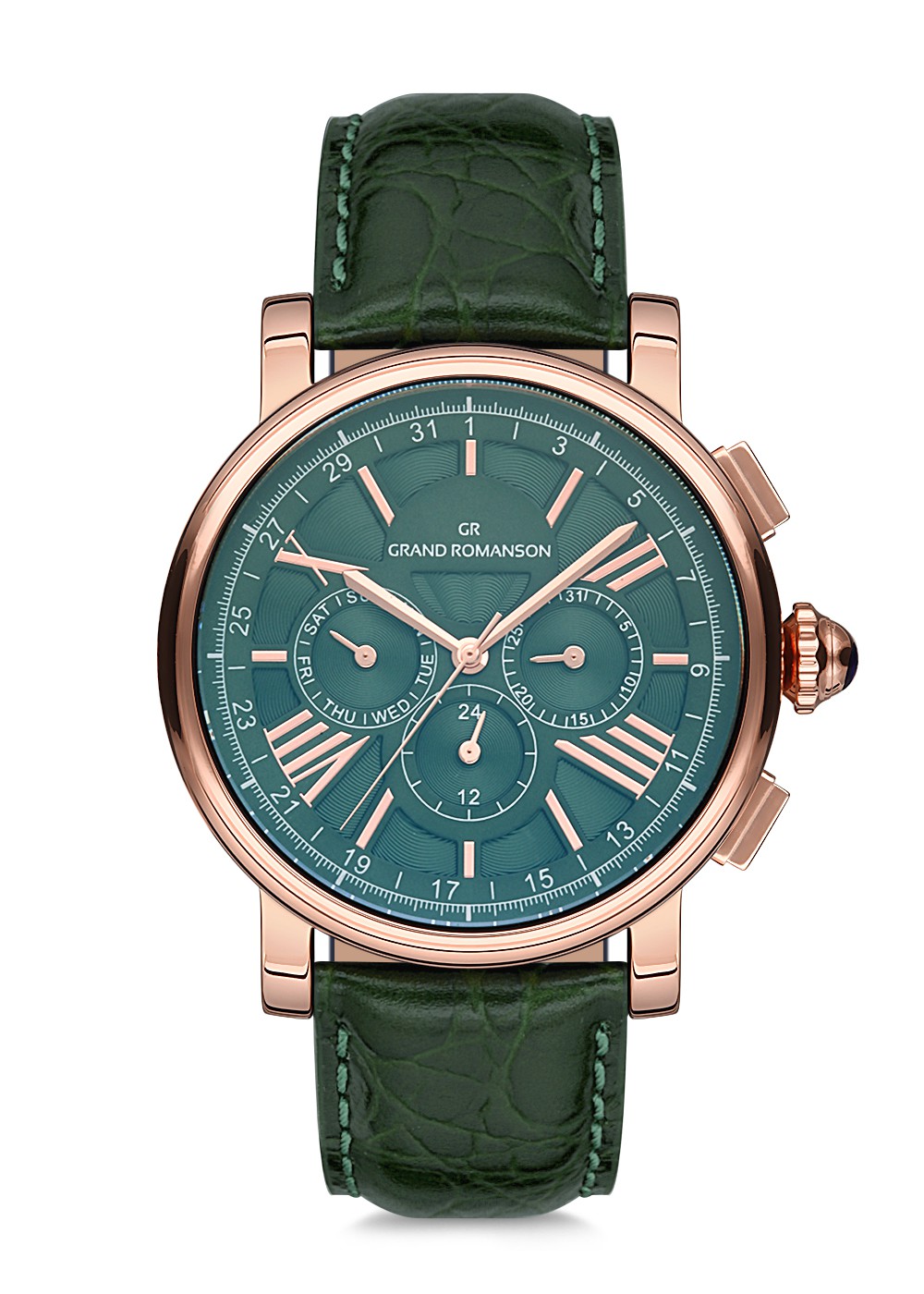 Erkek - Multi̇ Fonksi̇yon - Rose - Yeşi̇l - Doğal Deri̇ Kordon - Yeşi̇l - 3 Atm - Grand Romanson