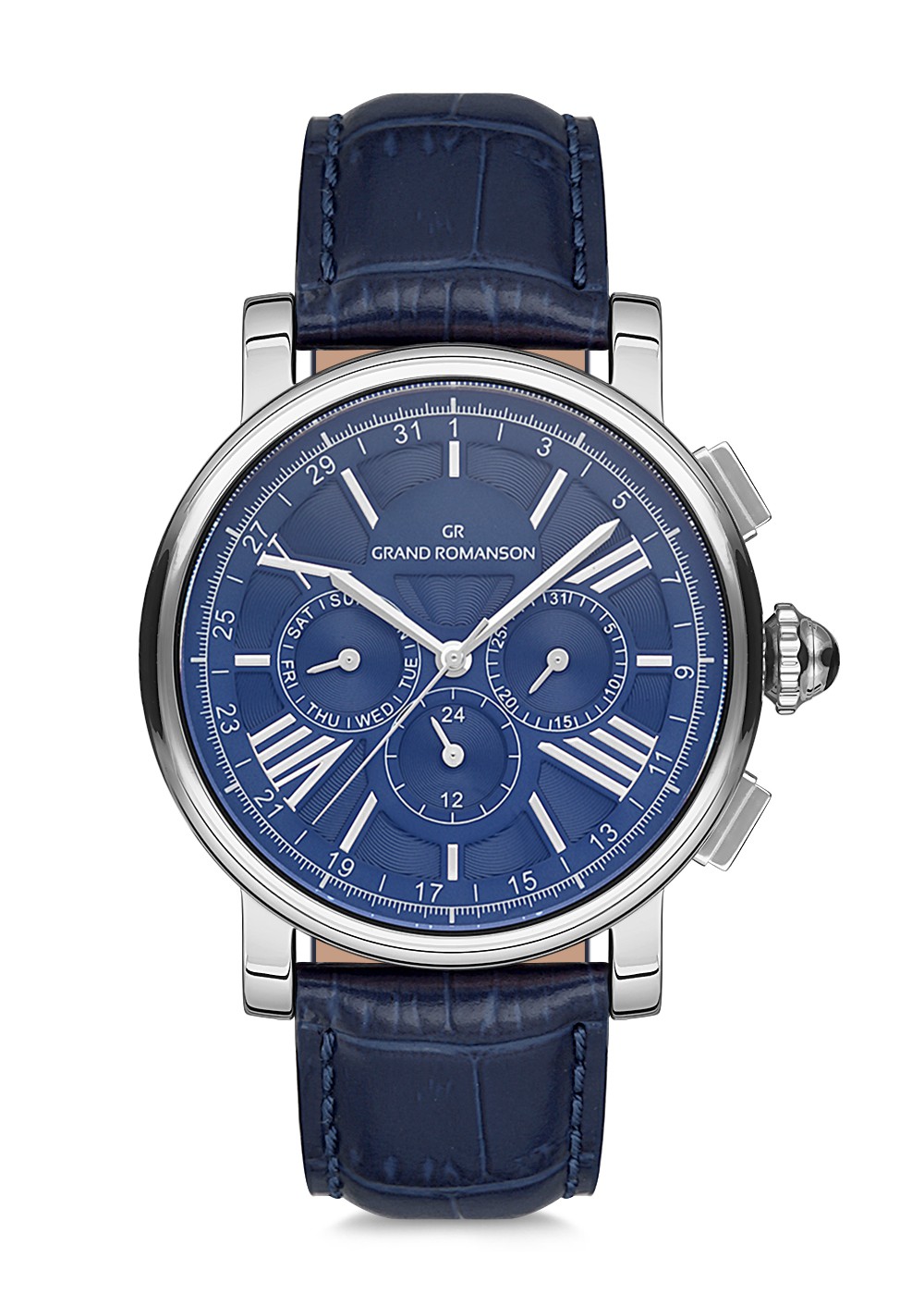 Erkek - Multi̇ Fonksi̇yon - Gümüş - Mavi̇ - Doğal Deri̇ Kordon - Mavi̇ - 3 Atm - Grand Romanson