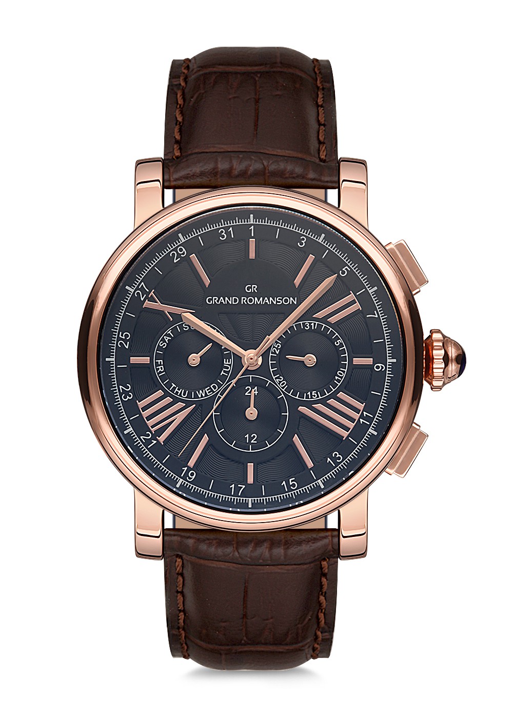 Erkek - Multi̇ Fonksi̇yon - Rose - Si̇yah - Doğal Deri̇ Kordon - Kahverengi̇ - 3 Atm - Grand Romanson