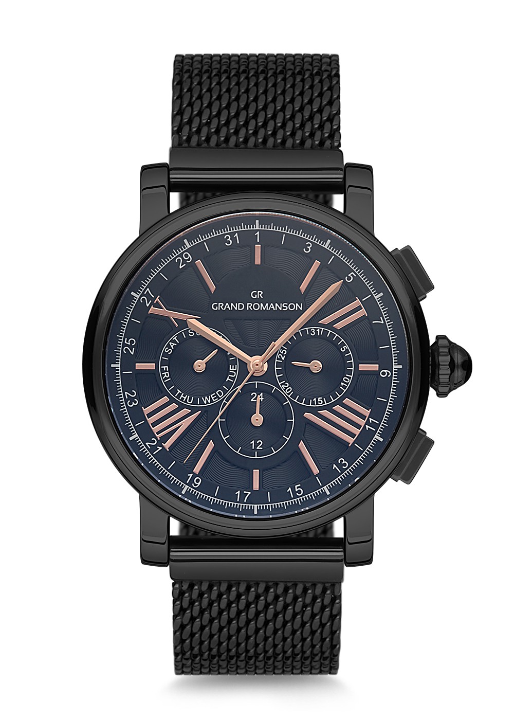 Erkek - Multi̇ Fonksi̇yon - Si̇yah - Si̇yah - Çeli̇k Örme Kordon - 3 Atm - Sertleşti̇ri̇lmi̇ş Mi̇neral Cam - Grand Romanson