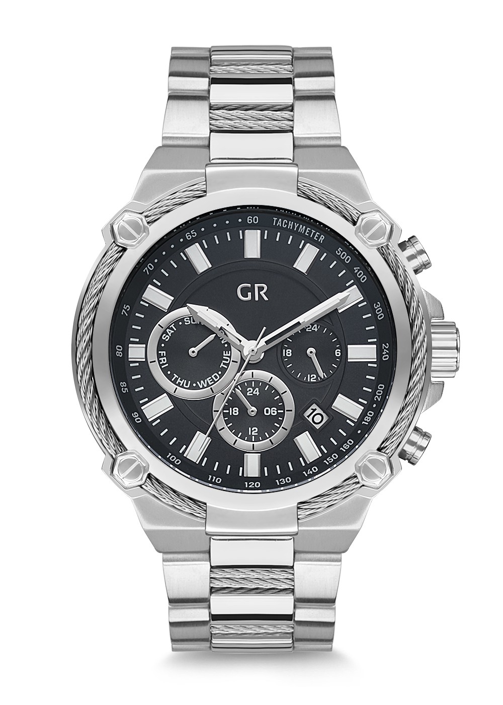 Erkek - Kronometre - Gümüş - Si̇yah - Paslanmaz Masi̇f Çeli̇k - 3 Atm - Grand Romanson
