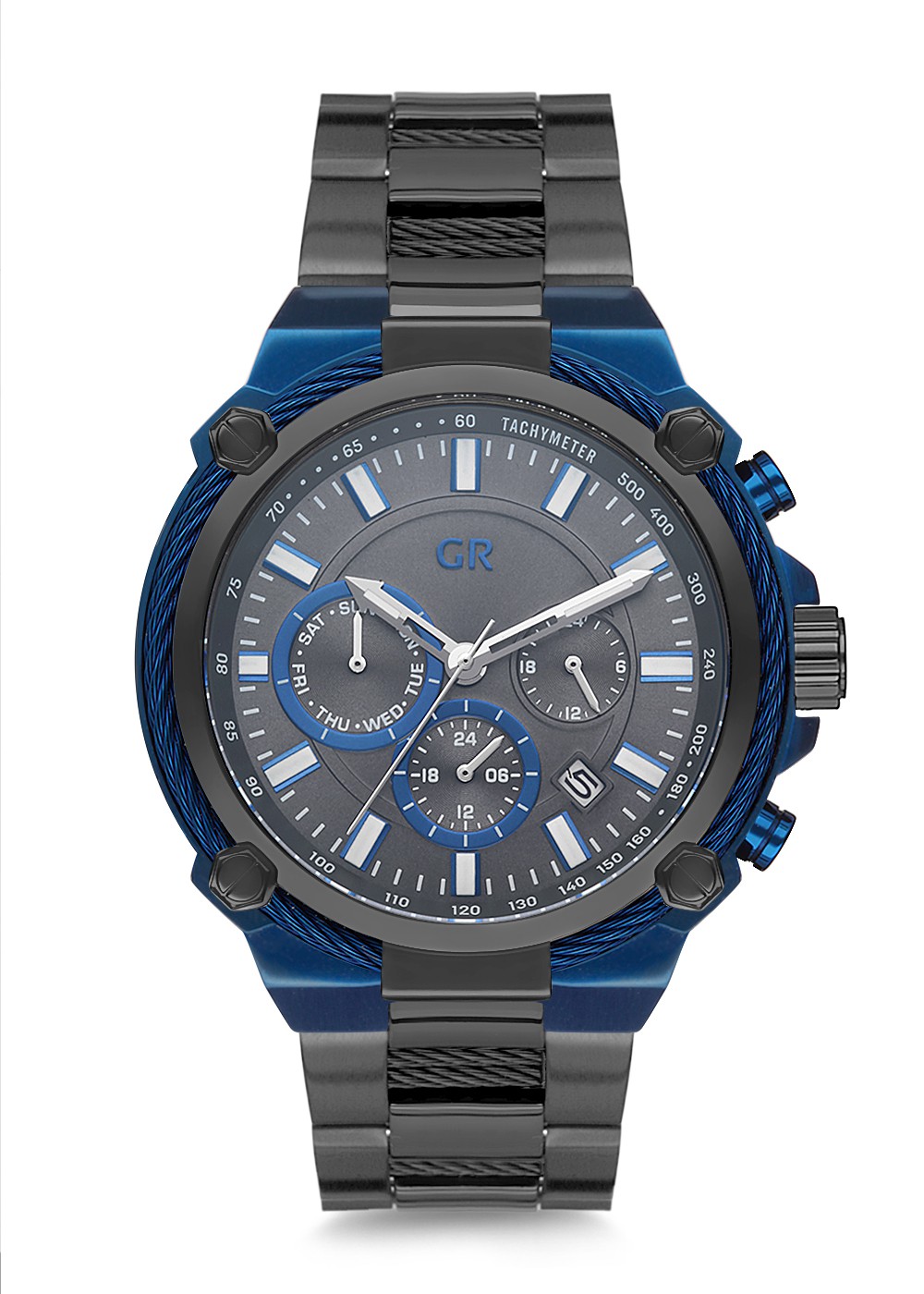 Erkek - Kronometre - Mavi̇ - Si̇yah - Paslanmaz Masi̇f Çeli̇k - 3 Atm - Grand Romanson