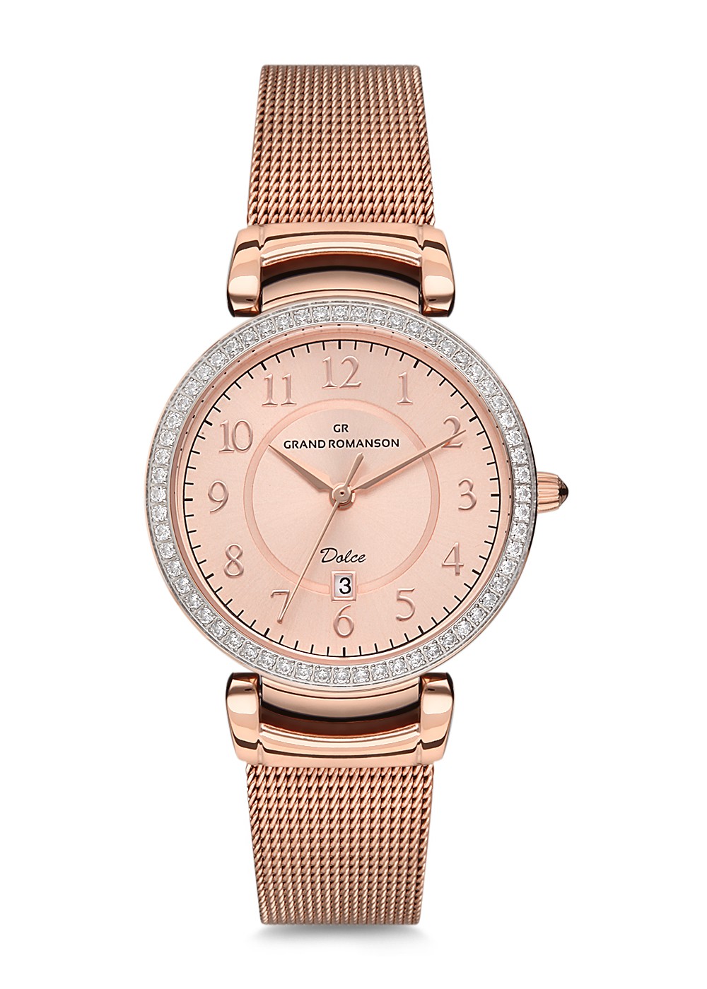 Kadın - Taşli - Rose - Kahverengi̇ - Paslanmaz Masi̇f Çeli̇k - 3 Atm - Grand Romanson