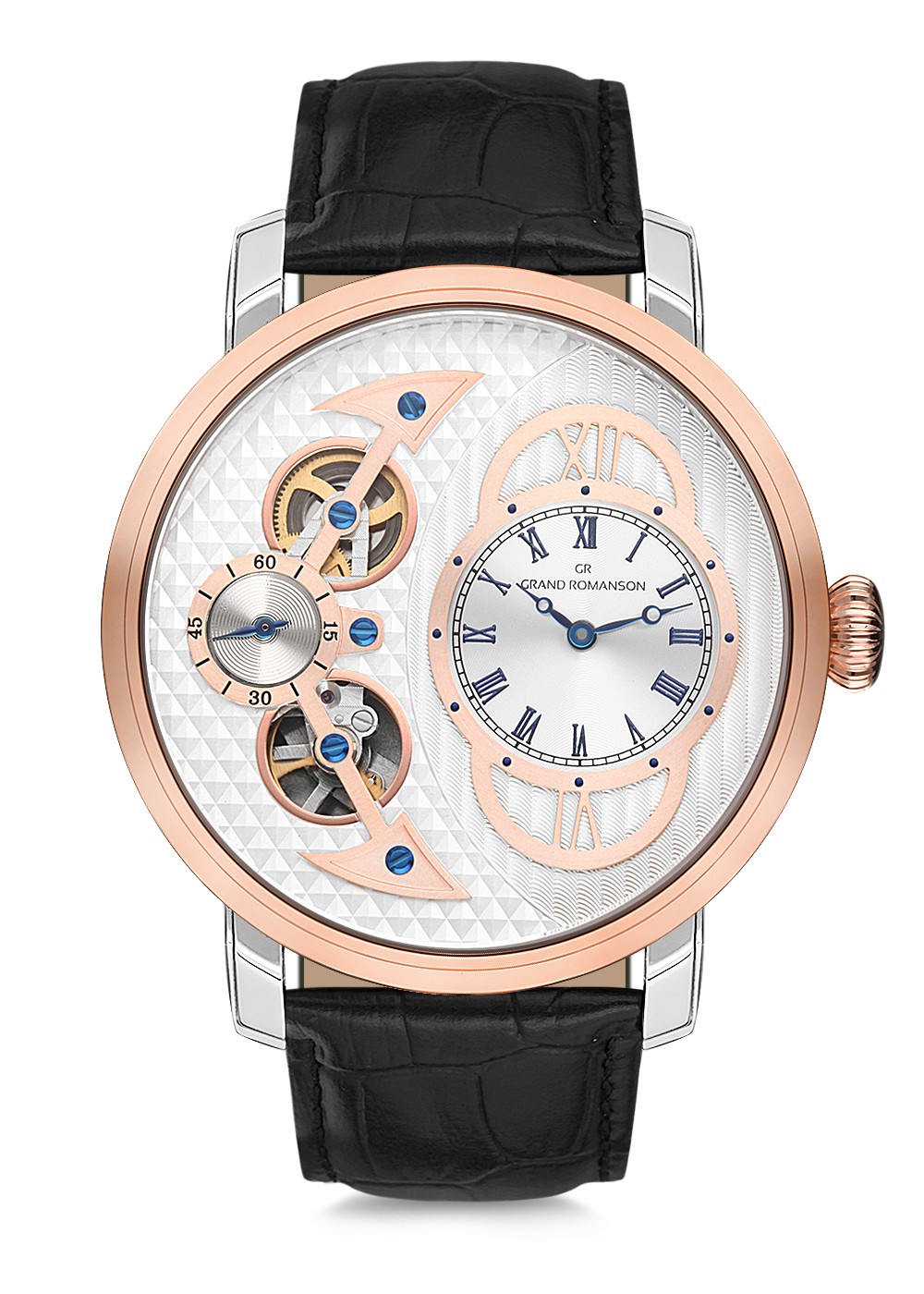 Erkek - Alttan Sani̇ye - Rose Beyaz - Gümüş - Doğal Deri̇ Kordon - Si̇yah - 3 Atm - Grand Romanson - 46