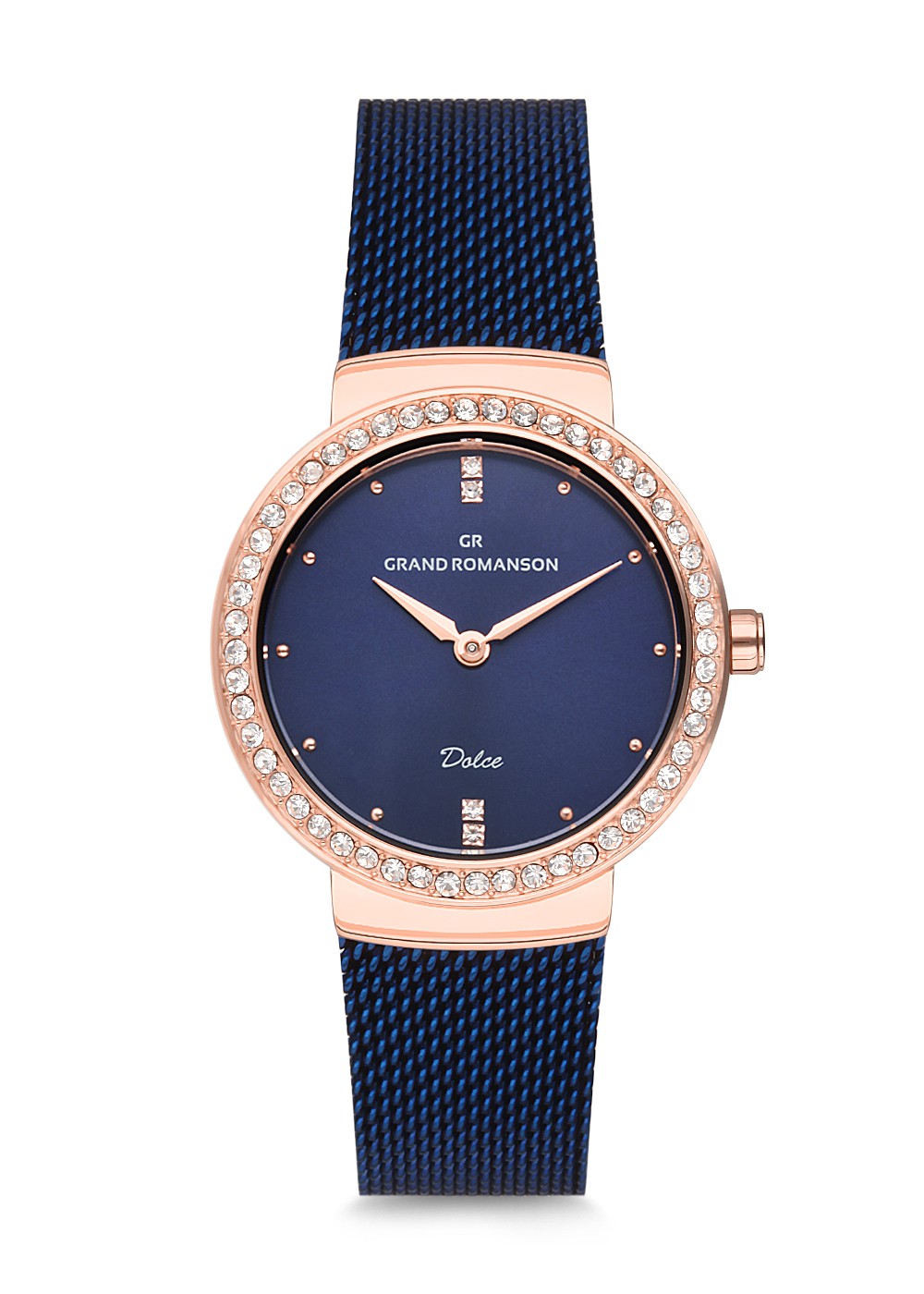 Kadın - Taşli - Rose - Mavi̇ - Çeli̇k Örme Kordon - 3 Atm - Grand Romanson