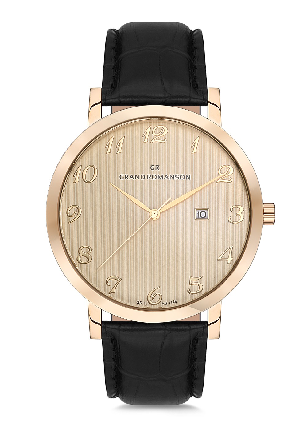 Erkek - Düz - Sari - Sari - Doğal Deri̇ Kordon - Si̇yah - 3 Atm - Sertleşti̇ri̇lmi̇ş Mi̇neral Cam - Grand Romanson