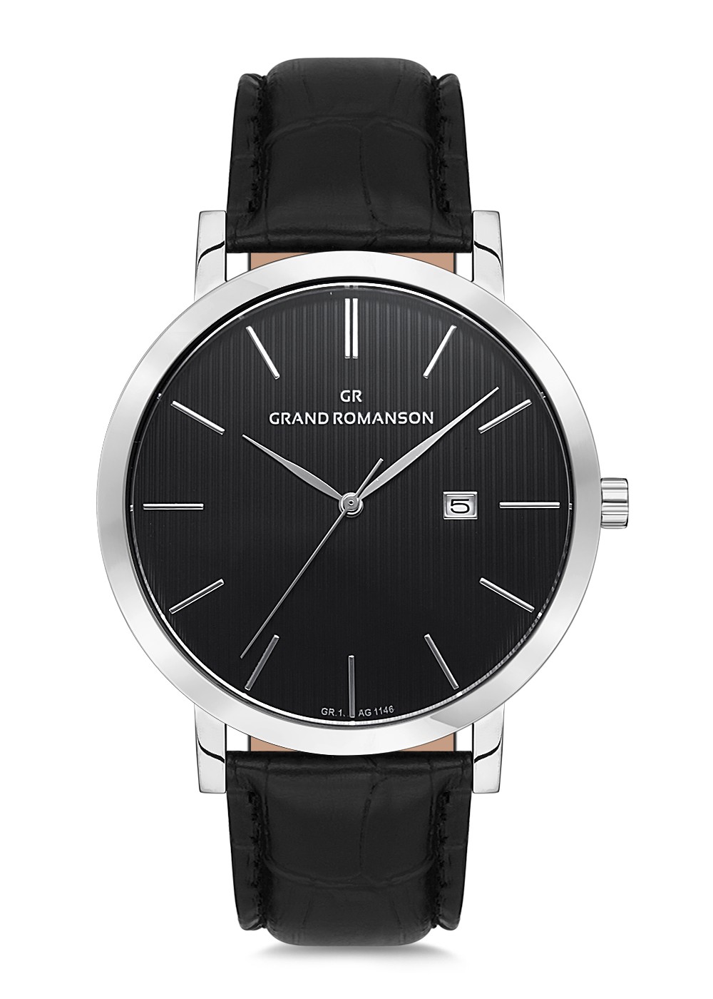 Erkek - Düz - Gümüş - Si̇yah - Doğal Deri̇ Kordon - Si̇yah - 3 Atm - Sertleşti̇ri̇lmi̇ş Mi̇neral Cam - Grand Romanson