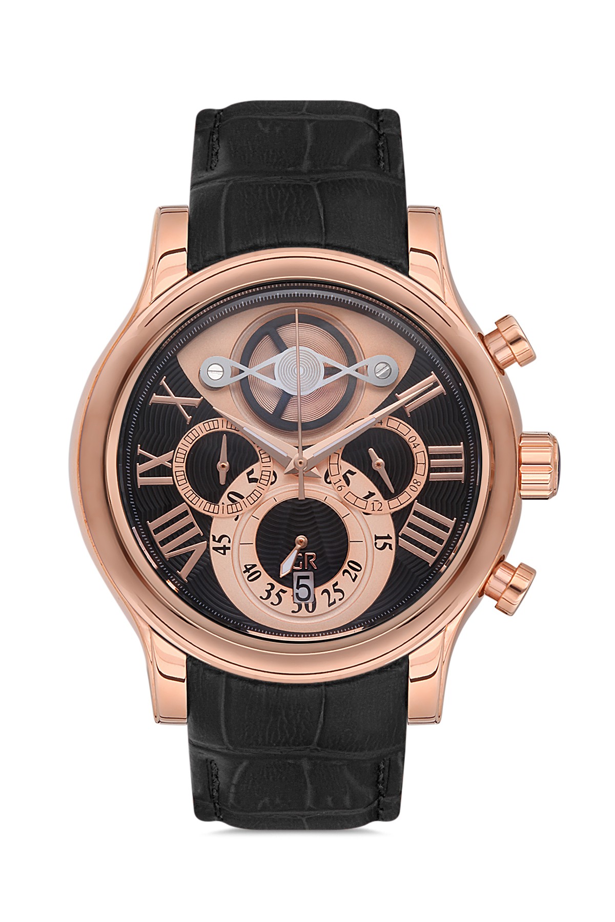 Erkek - Kronometre - Rose - Si̇yah - Doğal Deri̇ Kordon - Si̇yah - 3 Atm - Sertleşti̇ri̇lmi̇ş Mi̇neral Cam - Grand Romanson - 46
