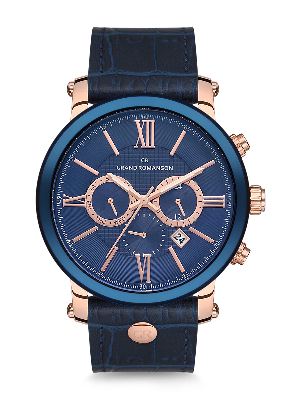 Erkek - Kronometre - Rose Mavi̇ - Mavi̇ - Doğal Deri̇ Kordon - Mavi̇ - 3 Atm - Grand Romanson